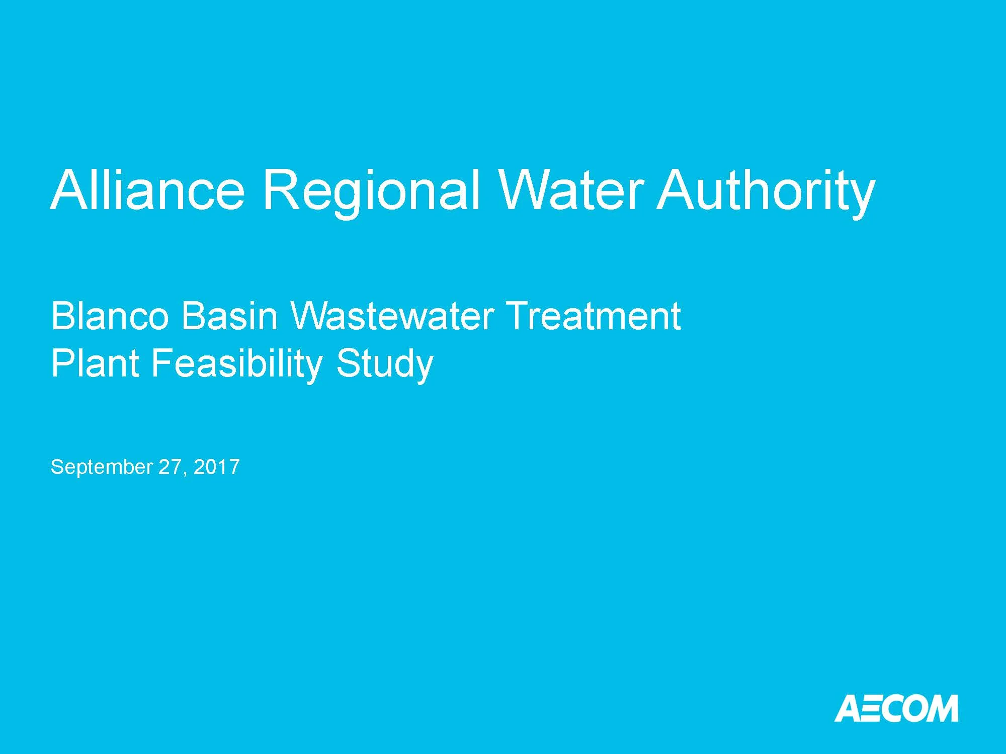 A presentation by AECOM Technical Services summarizing the Blanco Basin WWTP Feasibility Study